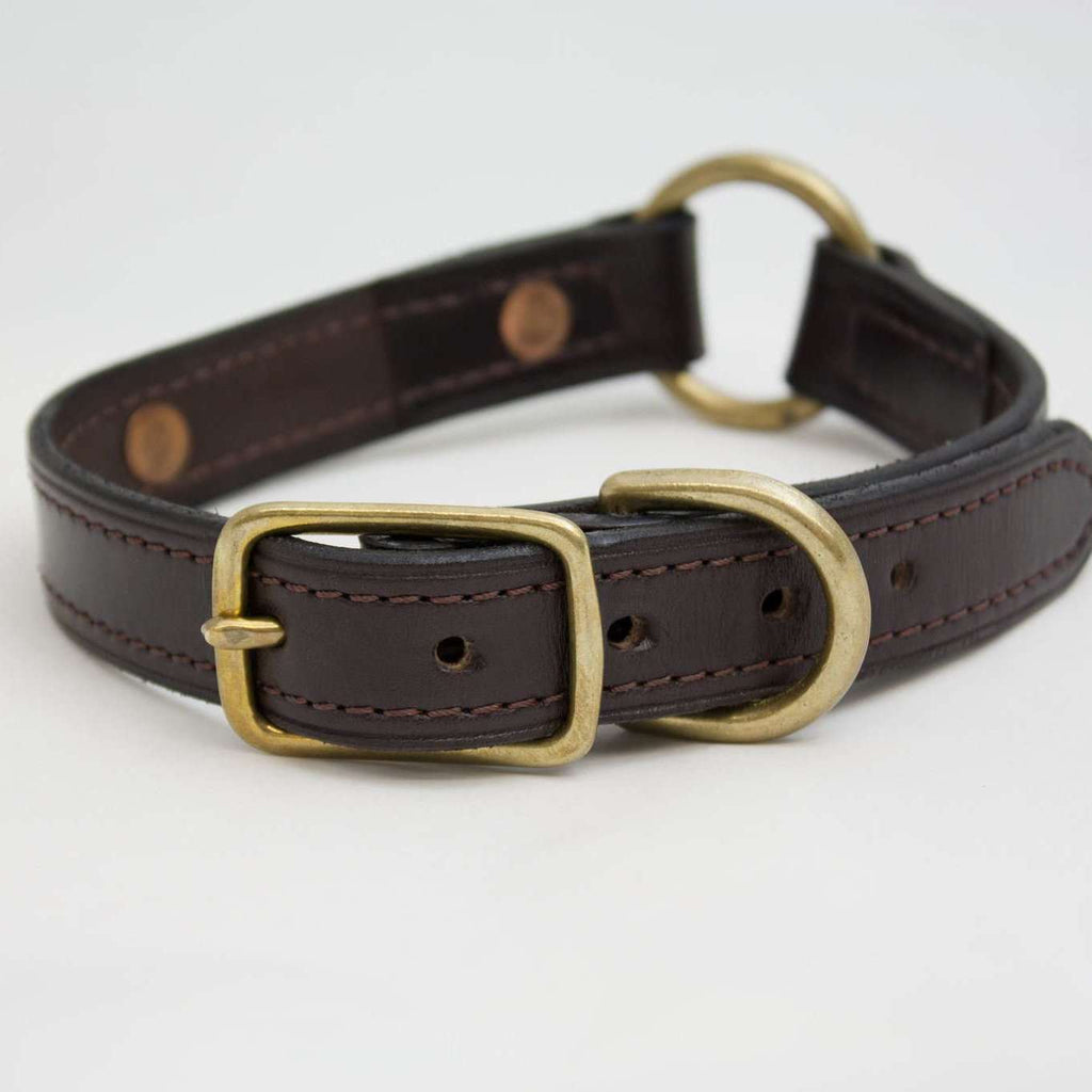 This dog collar has made its way across the country around my dogs' necks and will continue to do so. You can count on it to be extremely durable. Just make sure you tell your friends where you got it! Please measure your dog's current collar to fit. Featured in dark brown.
