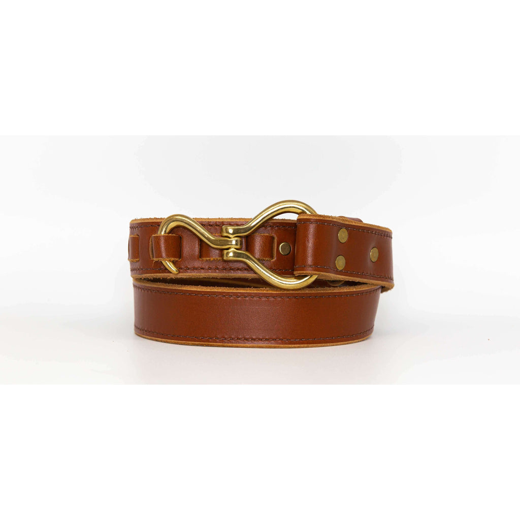 A classic style hoof pick belt that features a hoof pick woven into a Buffalo leather strap. Adjust the belt by choosing a different hole while placing the belt tab behind the buckle through the back clasp. This is a Bluegrass Belts original. (This belt does not come with a name plate.)