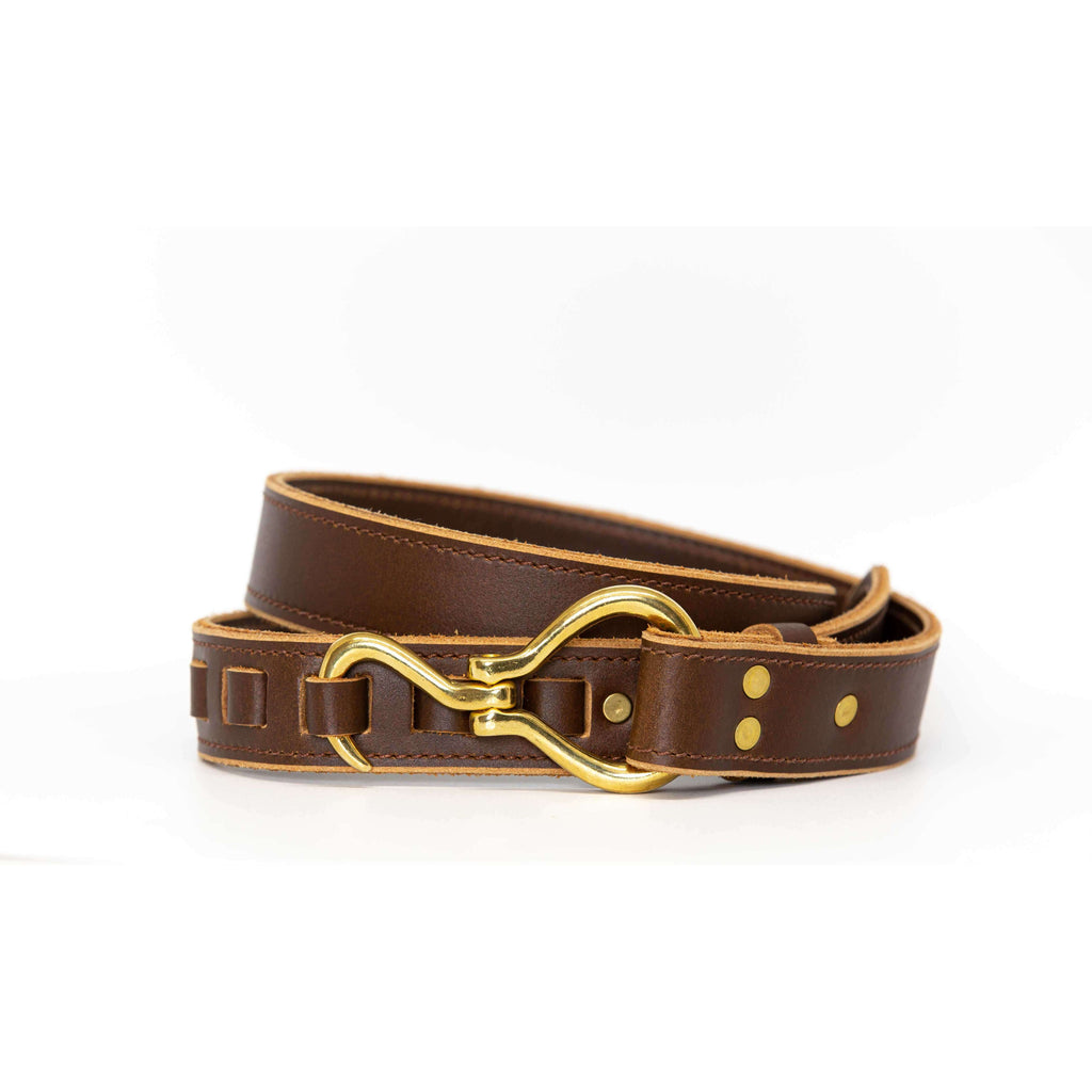 A Bluegrass Belts original, this classic style features a hoof pick woven into a buffalo leather strap. Adjust the belt by choosing a different hole while placing the belt tab behind the buckle through the back clasp. We suggest adding 2 inches to a man's pant size to obtain the best sizing.