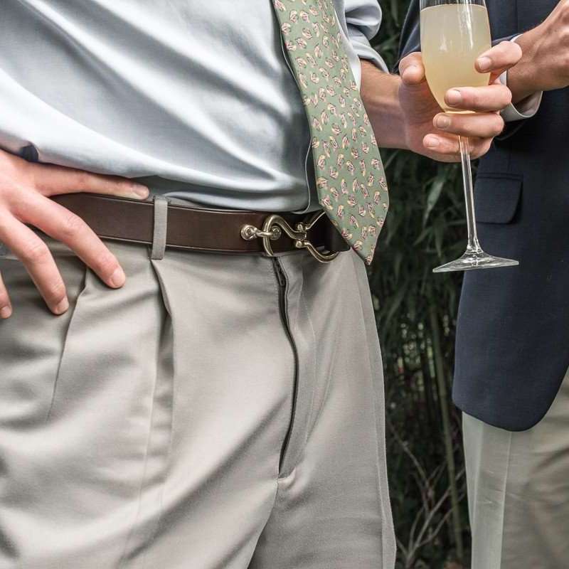 Simply the best Kentucky name plate belt available. Do not be fooled by cheaper imitations. All of our belts are made from ultra durable Bridle Leather. The same leather used by all of the local tack shops for anything from saddles to halters. Featured in dark brown with a classic hoof pick buckle which inserts into a metal clasp. Your belt will come stiff and break in perfectly over time . All of our belts come gently rolled and tied in a burlap sack.  Handmade here in Lexington, Kentucky.